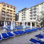 All-inclusive hotell med perfekt mat. Perfekt läge nära Alanya skeppsvarv. Sen utcheckning.